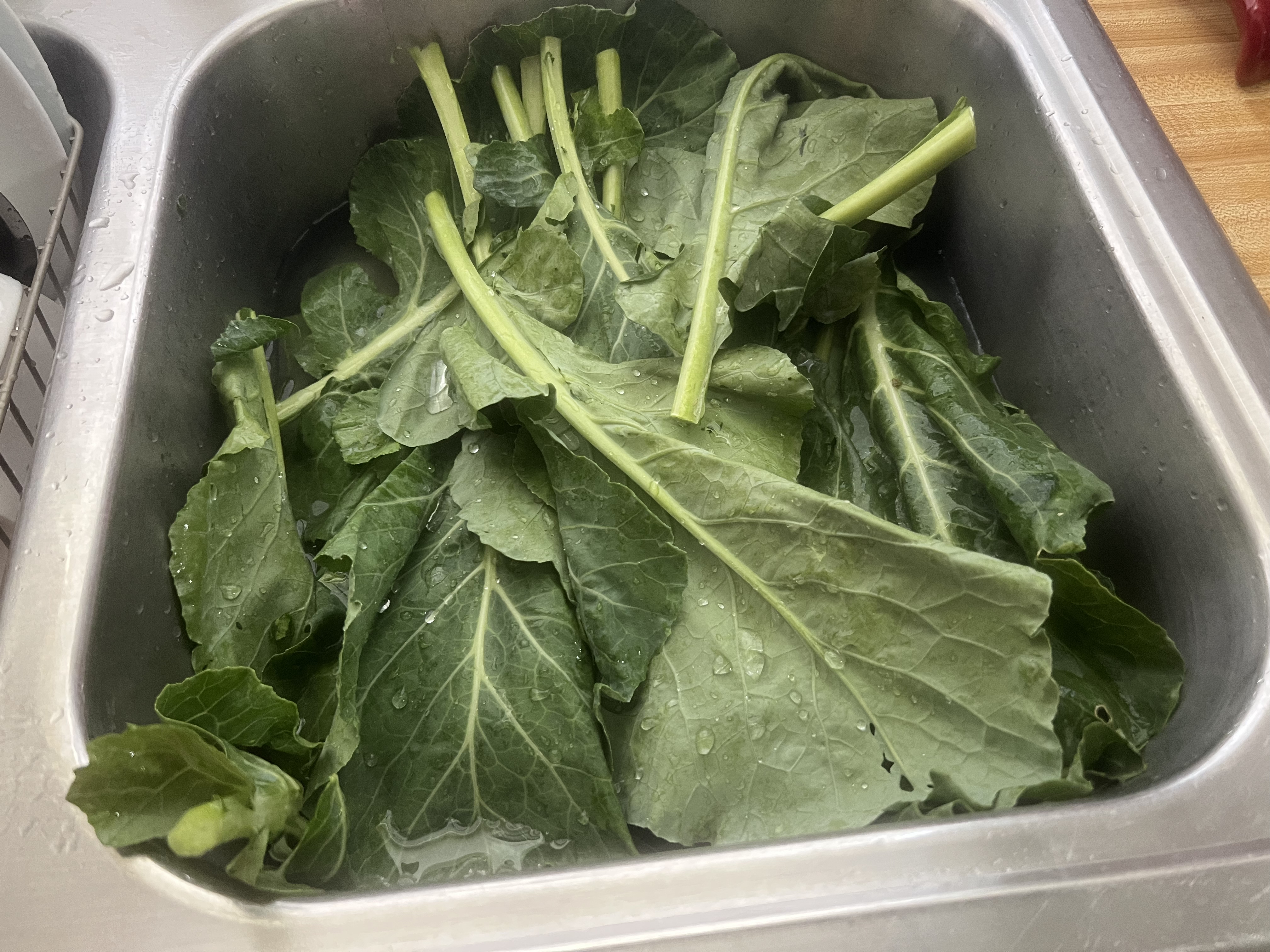 I’ve bought 4 bunches of collard greens, so I’ll need to repeat this process 1 more time.