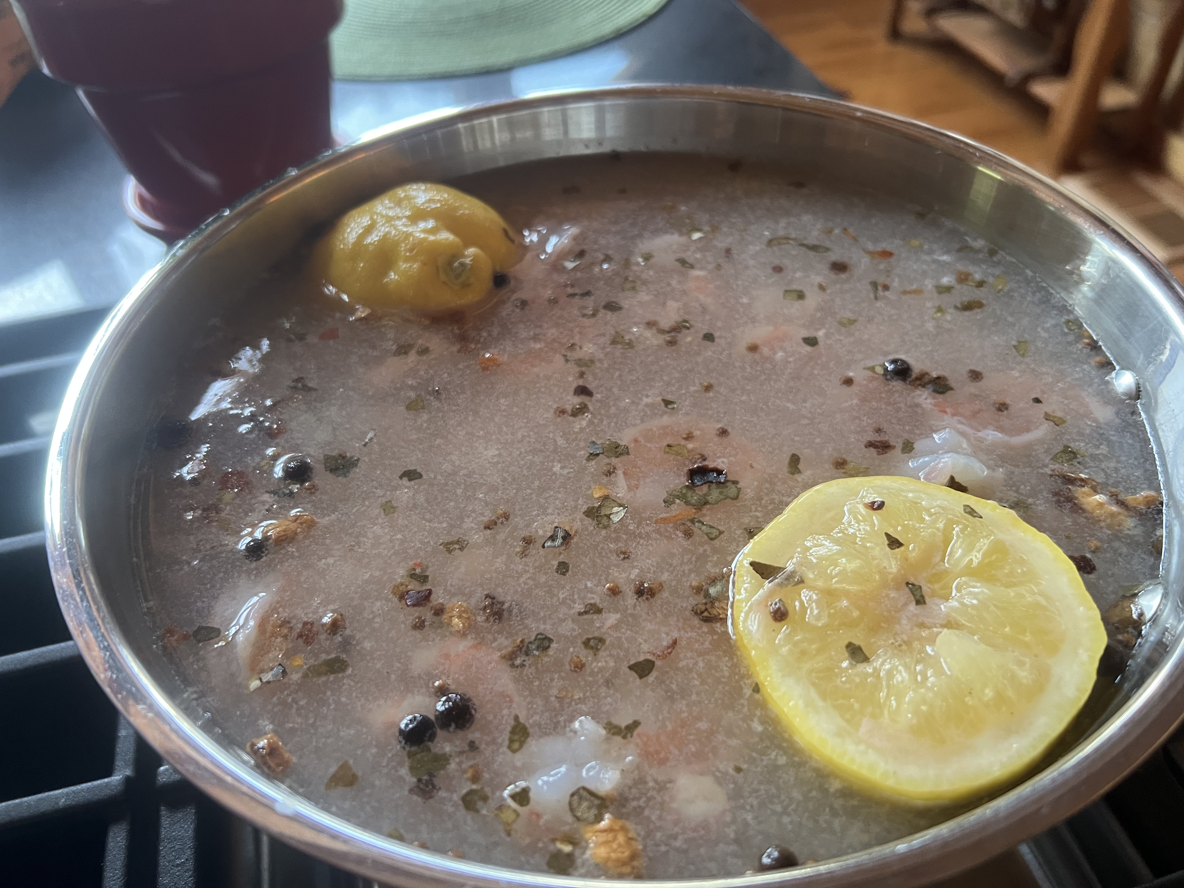 You know how I feel about cooking with fresh herbs; this is no exception. Today’s dish will have fresh dill, so using the tip for cooking the shrimp, using a secret ingredient that’s right on point. I boiled the shrimp for 90 seconds in fresh lemon juice and pickling spice. Those flavors penetrate the shrimp and give them an amazing depth of flavor.
